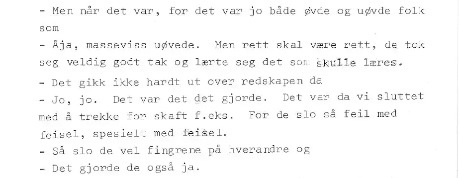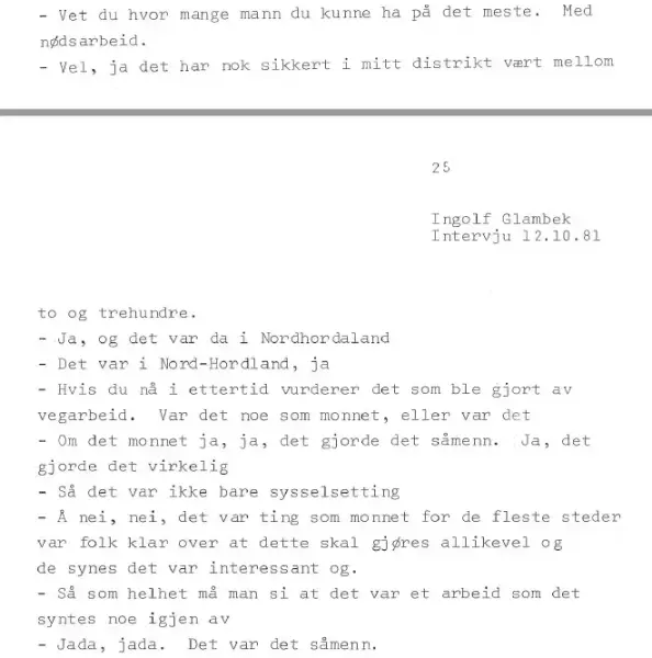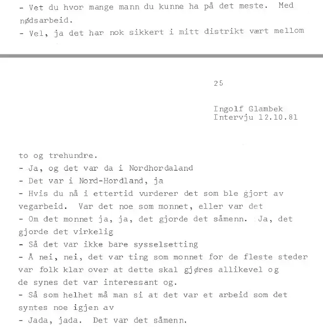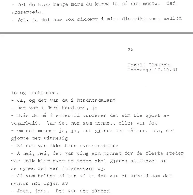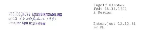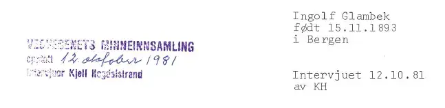 Utdrag fra intervju med Ingeniør Ingolf Glamiek (f. 1893). Intervjuet var gjennomført 12.10.81.