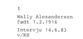 Intervju med Wally Alexandersen (f. 1916). Intervju gjort 14.6.83