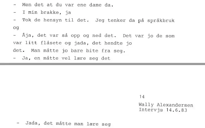 Utdrag fra intervju med Wally Alexandersen (f. 1916). Intervju gjort 14.6.83 Side 14
