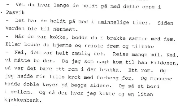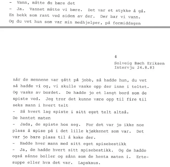 Utdrag av intervju med Solveig Bæch Eriksen. Intervju gjort 24.8.83. Side - 4/9