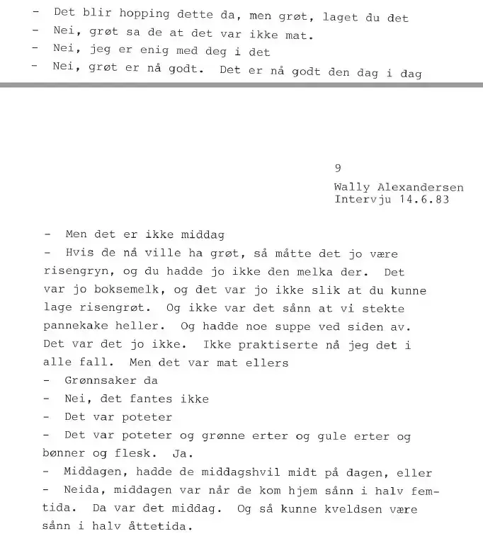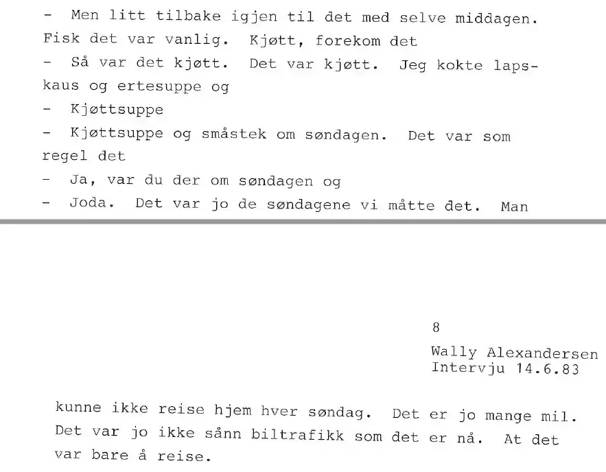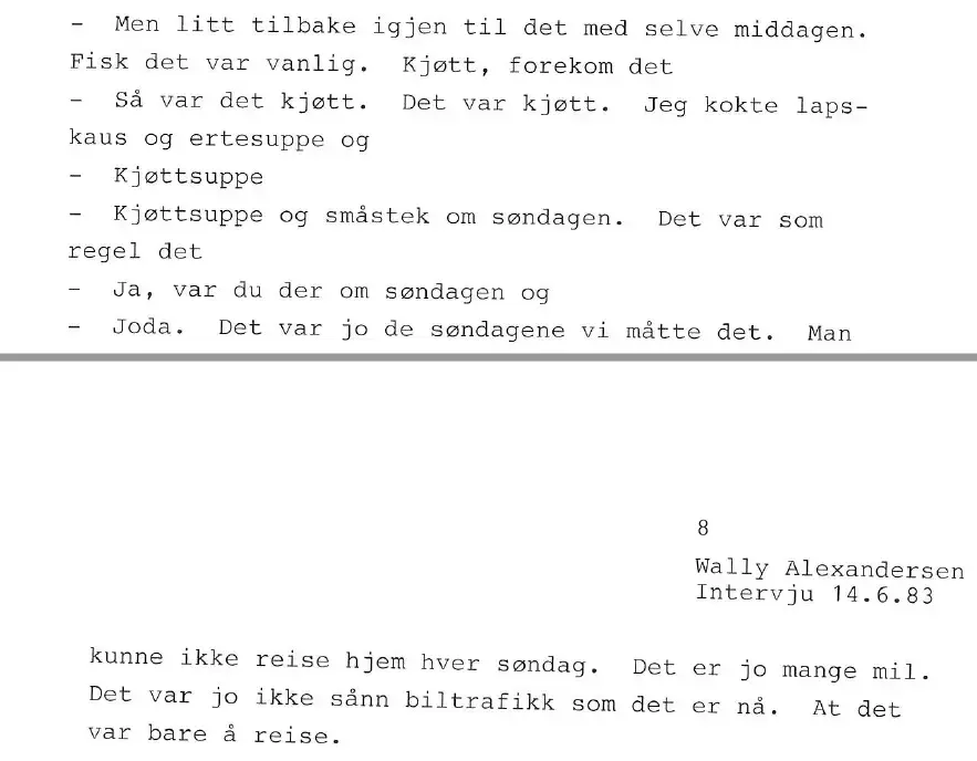 Utdrag fra intervju med Wally Alexandersen (f. 1916). Intervju gjort 14.6.83 Side 8 - 10/12