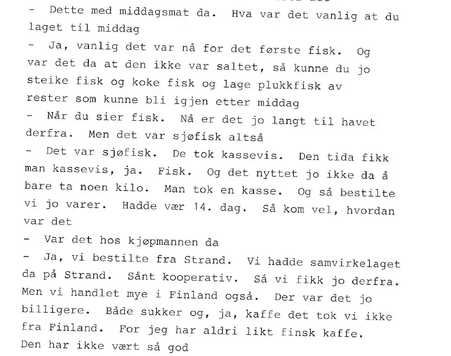 Utdrag fra intervju med Wally Alexandersen (f. 1916). Intervju gjort 14.6.83 Side 10 - 12/12