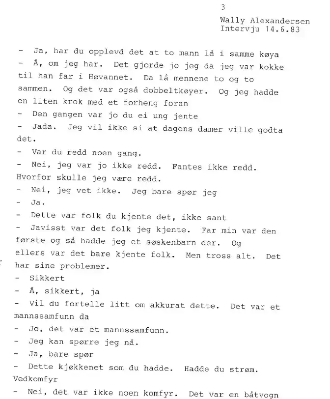 Utdrag fra intervju med Wally Alexandersen (f. 1916). Intervju gjort 14.6.83 Side 3 - 6/12