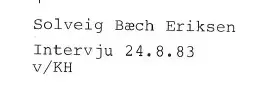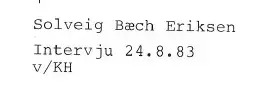 Intervju med Solveig Bæch Eriksen. Intervju gjort 24.8.83.