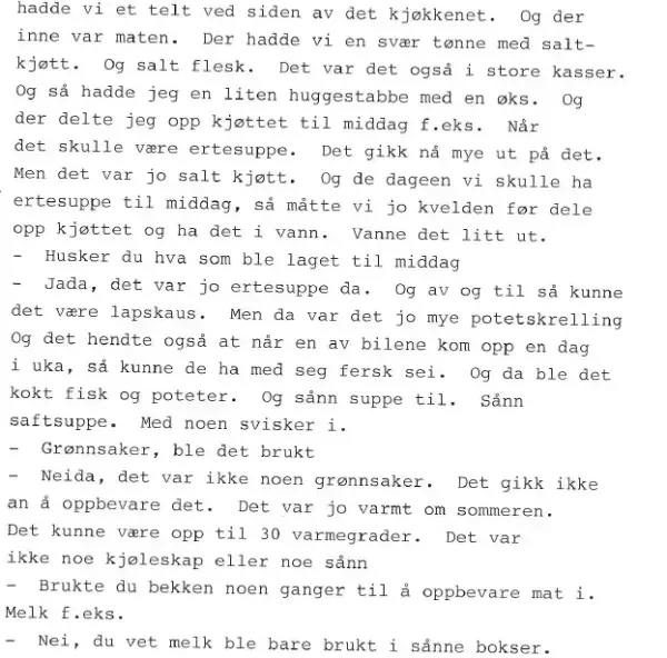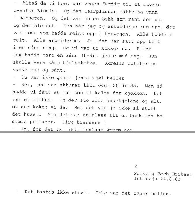 Utdrag av intervju med Solveig Bæch Eriksen. Intervju gjort 24.8.83. Side 3 - 5/9
