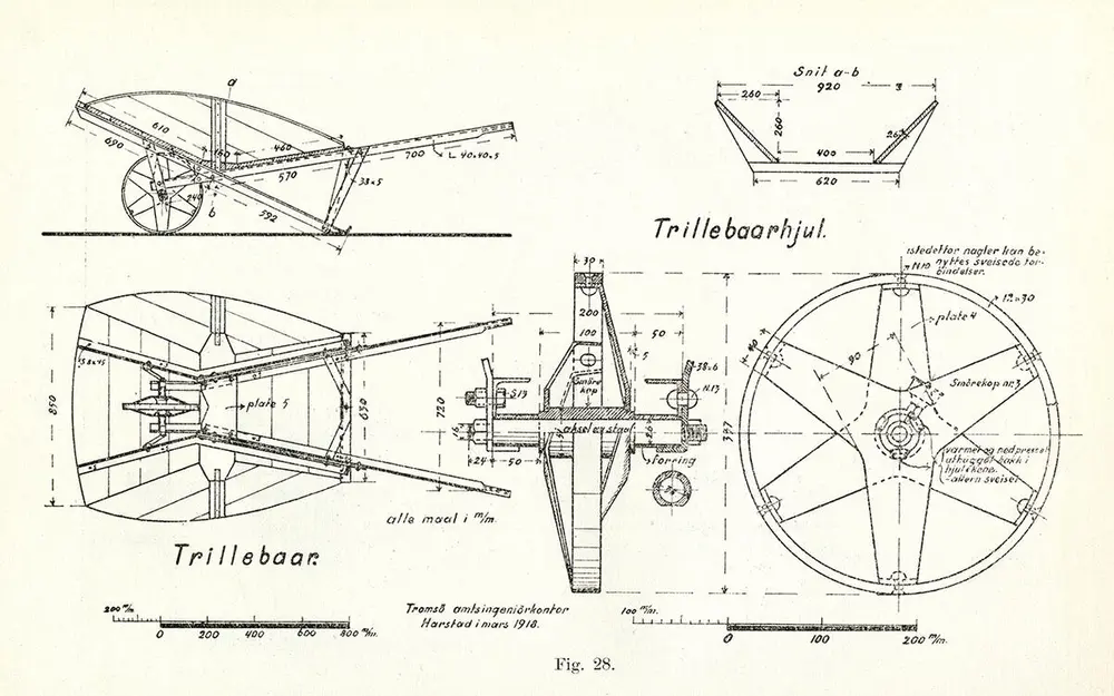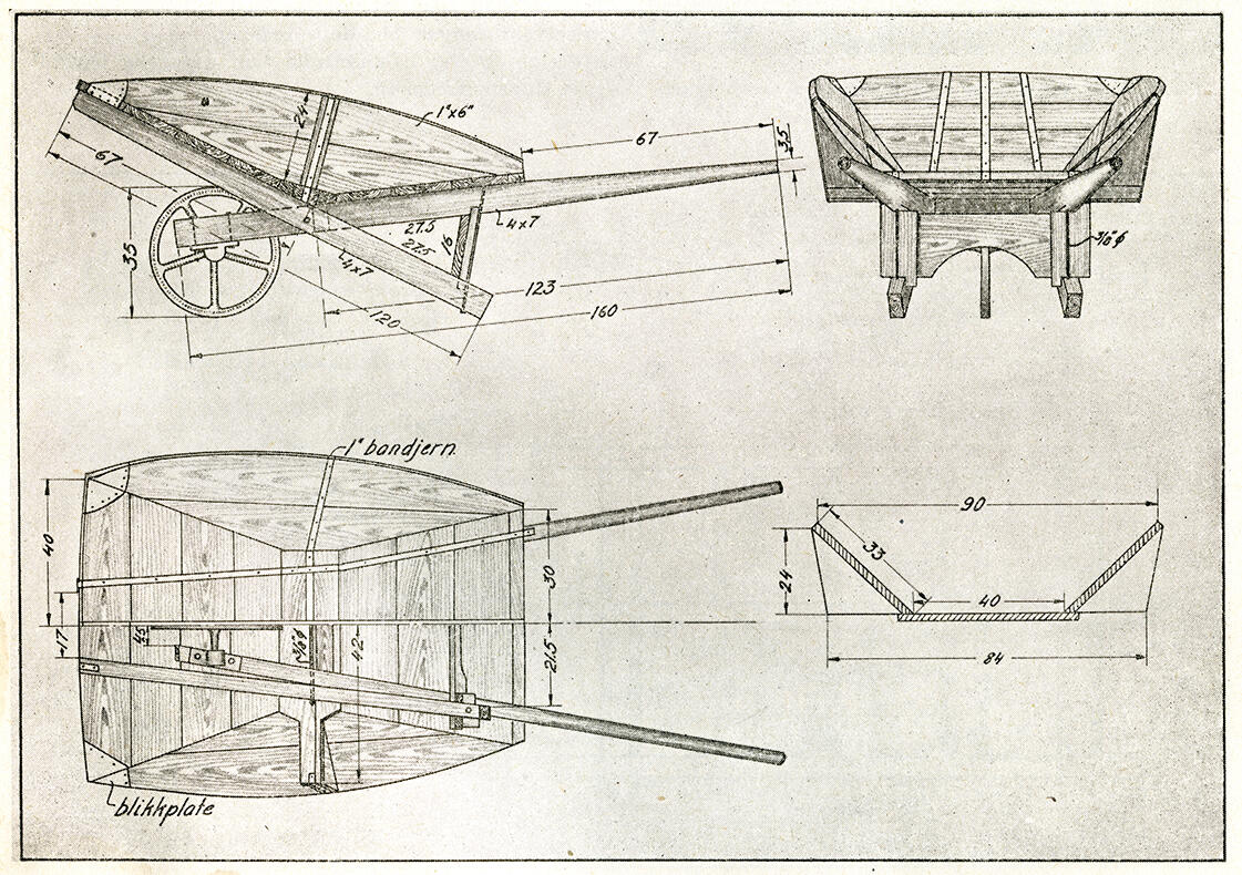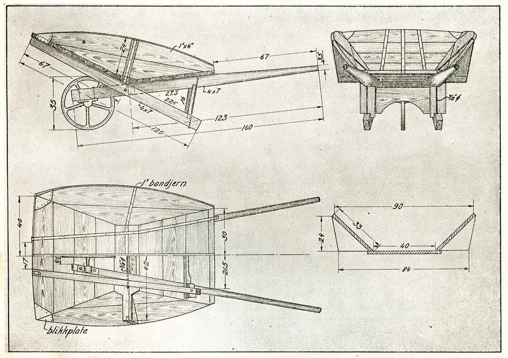 I «Vegvesenets redskaper og maskiner 1941» av overingeniør Johannes Eggen, står det følgende om trillebåra: