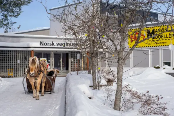 Hest i parken. Kristine Salme/Norsk vegmuseum Åpne eller lukk bildetekst Vinterferie 2025 Vinterferien ble gjennomført i perioden 15.februar.-2.mars. 2025